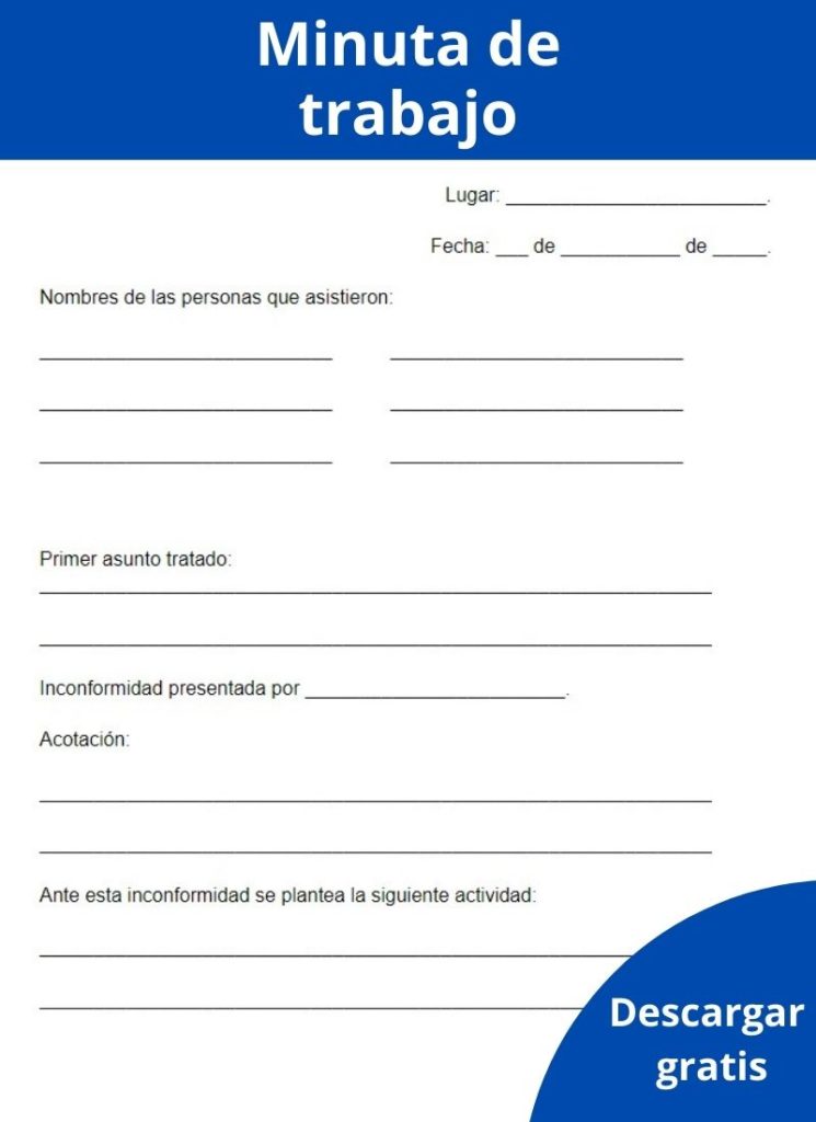 Como en una misma compañía su formato no debería cambiar de una reunión a otra, es recomendable realizar una plantilla que valga como modelo, previendo todos los datos que se desean registrar, para poderla utilizar en cualquier ocasión.