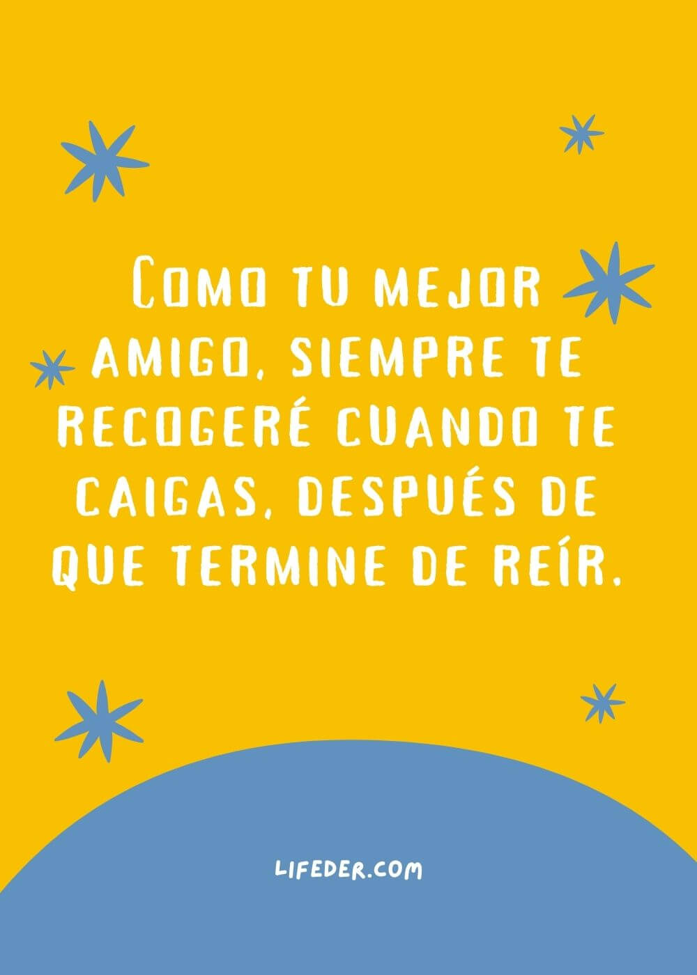 -Como tu mejor amigo, siempre te recogeré cuando te caigas, después de que termine de reír.