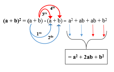 a. Binomio de suma al cuadrado: es igual al cuadrado del primer término, más el doble del producto de los términos, más el cuadrado del segundo término. Se expresa de la siguiente manera: