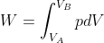 Como el producto Adx es un diferencial de volumen dV, entonces dW = pdV. Resta integrar a ambos lados desde el volumen inicial VA hasta el volumen final VB para obtener el trabajo total realizado por el gas:
