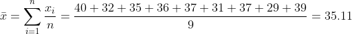 Donde n es el número de datos de que se dispone, xi representa a cada dato y x̄ es el promedio, el cual se determina sumando todos los datos y dividiendo entre n: