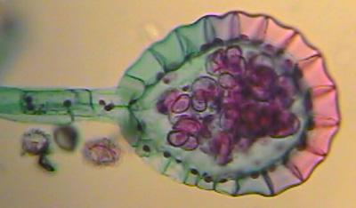 Esporangios de hongos que forman esporas con flagelo (zoosporas)
