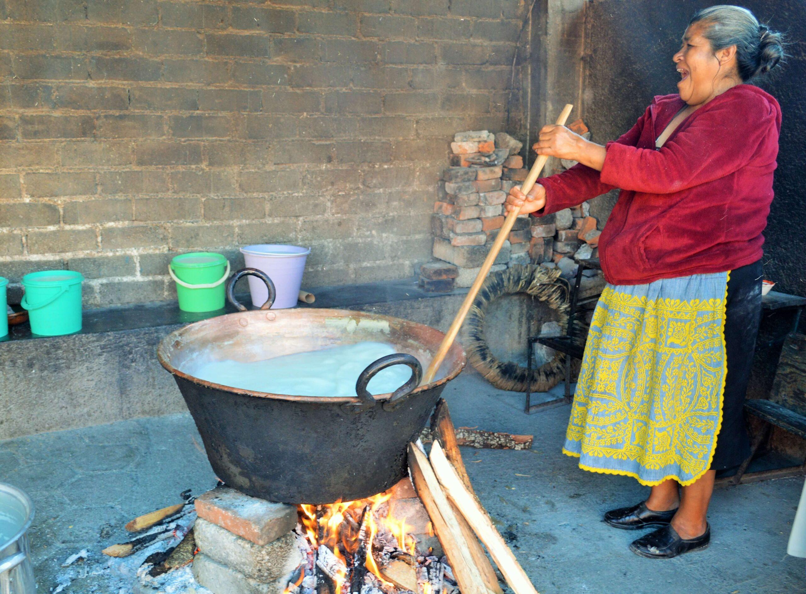 Nicuatole es un postre de tradición zapoteca elaborado a base de maíz, azúcar, canela, leche y colorante rojo de cochinilla.