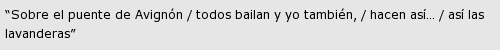 Mientras los niños se mueven, deben cantar o recitar. Las canciones que forman parte de las rondas infantiles suelen transmitirse de generación en generación. Entre las más conocidas se encuentran “Sobre el puente de Avignón”: